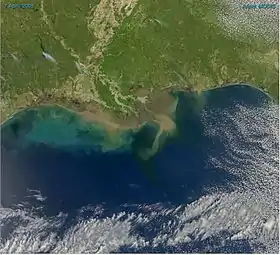 الرواسب التي تنقلها المجاري المائية كما تظهر في صورة للقمر الصناعي لخليج المكسيك