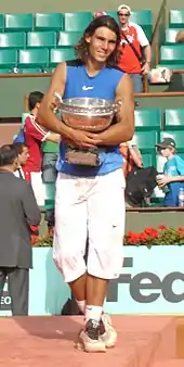 وبالفعل، استطاع رفاييل نادال في يوم عيد ميلاده التاسع عشرة أن يتغلب على روجر فيدرير في نصف نهائي بطولة فرنسا المفتوحة. من ثم، تغلب نادال على اللاعب ماريانو بويرتا في النهائي، ليصبح ثالث لاعب فقط يفوز بلقب جراند سلام من المحاولة الأولى، بعد ماتس ويلندر عام 1982[84] وغوستافو كويرتن عام 1997. كما وأصبح أوّل مراهق يفوز بلقب جراند سلام في الفردي منذ أن فعلها بيت سامبراس في بطولة أمريكا المفتوحة في عام 1990.[67] بعد فوزه هذا ارتفع تصنيف نادال إلى المركز الثالث عالميًا.[83]