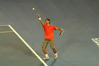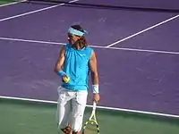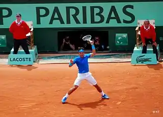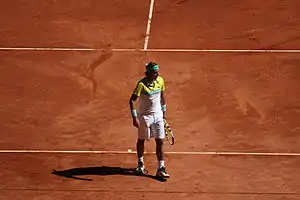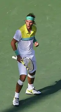 رافاييل "رافا" نادال باريرا (بالكاتالونية: [rəfəˈɛɫ nəˈðaɫ pəˈɾeɾə]، بالإسبانية: [rafaˈel naˈðal paˈɾeɾa]، ولد في 3 يونيو 1986 بمدينة ماناكور في إسبانيا) هو لاعب كرة مضرب إسباني. وأحد اللاعبين الذين تربعوا على عرش التصنيف العالمي للعبة. يرى بعض المحللين والنقاد بأن نادال سوف يصبح أعظم لاعب كرة مضرب على مر العصور.[22][23][24][25][26][27][28][29][30][31] بفضل نجاحاته على الملاعب الترابية بشكل خاص، استحق نادال لقب "ملك الملاعب الترابية" كونه يعتبر لاعباً دفاعياً من الطراز الأول، وذلك بفضل لياقته العالية وروحه القتالية.[32][33][34][35][36][37] يملك نادال رقم قياسي بعدد الانتصارات المتتالية بمباريات أجريت على الملاعب الترابية أو أي أرضية أخرى ما زال قائما وهو 81 انتصار متتالي، وانتهى بخسارة نادال أمام اللاعب السويسري روجر فيدرير في نهائي بطولة هامبورغ عام 2007.[38] ولهذا يعتبره العديد من الصحفيين الرياضيين والمعلقين فضلاً عن لاعبين سابقين وحاليين، أعظم لاعب على الملاعب الرملية في التاريخ.[39][40][41][42][43]