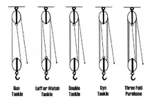 Tackle may be rigged to advantage - where the pull on the rope is in the same direction as that in which the load is to be moved; or it may be rigged to disadvantage - where the pull on the rope is in the opposite direction of that in which the load is to be moved