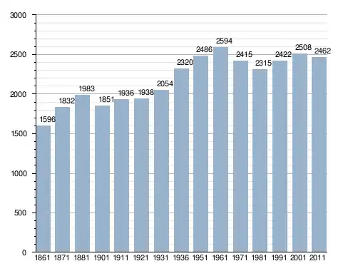 في سنة 1861 بلغ عدد السكان 1٬596 نسمة، وتطور العدد ليصل في سنة 2011 لـ 2٬462 نسمة.