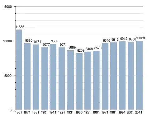 في سنة 1861 بلغ عدد السكان 11٬656 نسمة، وتطور العدد ليصل في سنة 2011 لـ 10٬028 نسمة.
