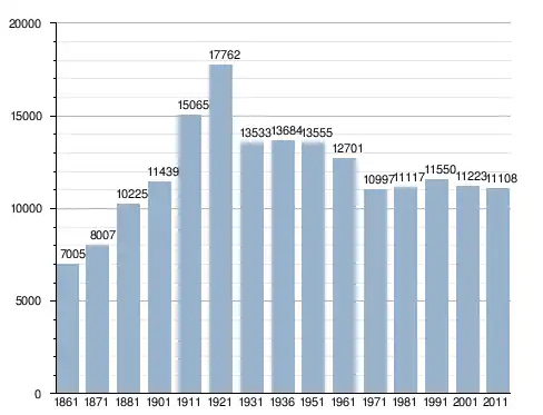في سنة 1861 بلغ عدد السكان 7٬005 نسمة، وتطور العدد ليصل في سنة 2011 لـ 11٬108 نسمة.