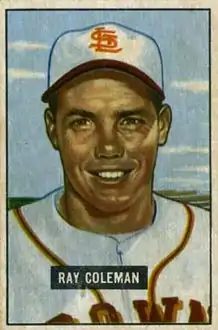 راي كولمان (بالإنجليزية: Ray Coleman) هو لاعب كرة قاعدة أمريكي، ولد في 4 يونيو 1922 في دونسموير في الولايات المتحدة، وتوفي في 19 سبتمبر 2010 في نورمان في الولايات المتحدة.[2][3]