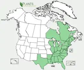 يتواجد هذا النبات في شرق الولايات المتحدة وكندا من أونتاريو وكيبك شمالاً إلى فلوريدا جنوباً.