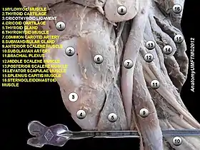 تشريح عميق لعضلات وأعصاب وشرايين الرقبة، منظر أمامي.