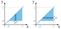 تغيير رتب التكامل، عن طريق تغيير أخذ مقطع عمودي أو أفقي.