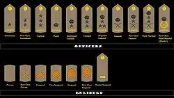 | 1 | جندي أو جندي ثاني | ![]() رتبة جندي |