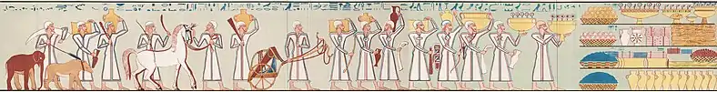 شاميون يجلبون الهدايا لتحتمس الثالث ، في قبر رخميرع ، حوالي 1450 قبل الميلاد (الرسم الفعلي والرسم التفسيري). يطلق عليهم "رؤساء ريتنو[1][2]