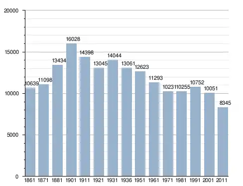 في سنة 1861 بلغ عدد السكان 10٬639 نسمة، وتطور العدد ليصل في سنة 2011 لـ 8٬345 نسمة.