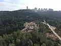 محطة تلفريك التخنيون العلوية قيد الإنشاء تظهر في الخلفية رمات ألون