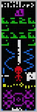 يمثل العنصر الأحمر بالمركز إنسانًا. يمثل العنصر إلي اليسار متوسط طول ذكر بالغ في الولايات المتحدة : 1.764 متر. يتوافق هذا مع الشفرة الثنائية المكتوبة بشكل عرضي (14) مضروبة في الطول الموجي للرسالة (126 مليمتر). يمثل العنصر الأبيض علي اليمين العدد السكاني للبشر في 1974، حوالي 4.3 مليار. في هذا الحالة يميل الرقم في البيانات بشكل عرضي عوضًا عن طولي. علامة العدد الأقل أهمية موجود بأعلي اليسار في الصورة، حيث تتجه البتس إلي اليمين وتوجد الأعداد الأكثر أهمية بالأسفل.