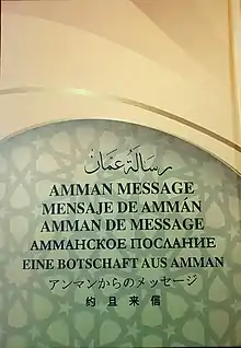 رسالة عمان هو البيان الذي صدر في 9 نوفمبر 2004 (27 رمضان 1425 ه) من قبل الملك عبد الله الثاني بن الحسين من الأردن، داعيا إلى التسامح والوحدة في العالم الإسلامي. وهذه ثلاث مبادئ صدر الحكم من قبل 200 من علماء الدين الإسلامي في أكثر من 50 بلدا، مع التركيز على قضايا: تحديد من هو مسلم؛ الطرد من الإسلام (التكفير)، والمبادئ المتعلقة بتسليم المراسيم الدينية (الفتاوى).