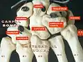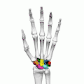 ![]() عظام الرُّسغ الثمانية تظهر بشكل ملون. | |