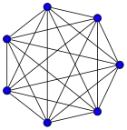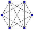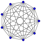 للرسم البياني الكامل بـ n رؤوس يوجد أضلاع (عدد مثلثي), ويشار إليه بـ Kn (من komplett بالألمانية والتي تعني كامل).[1] هو رسم بياني منتظم من الدرجة n − 1.