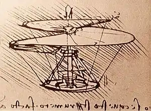 رسم تقريبي بخط ليوناردو دافنشي ل(مروحة ليوناردو)