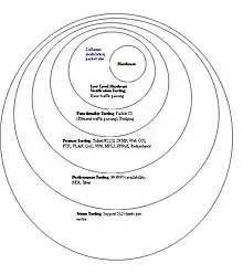رسم توضيحية لمراحل تصميم منظومة اتصالات. تعتمد الدوائر الخارجية على الدوائر الداخلية