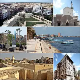 ![]() مجموعة صور لبعض معالم رشيد: (أعلى): مسجد العباسي • شمال مدينة رشيد. - (وسط): كورنيش النيل • ميدان الحرية. - (أسفل): منزل رمضان • قلعة رشيد | |