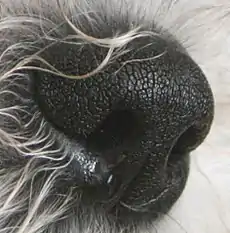 In most mammals we find a moist and shiny glandular area around the nostrils....