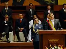 رافائيل كوريا خلال خطابه الافتتاحي كرئيس للإكوادور