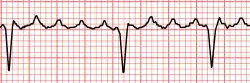 ![]() Atrial flutter with varying A-V conduction (3:1 and 4:1) Atrial flutter with varying A-V conduction (3:1 and 4:1) | |