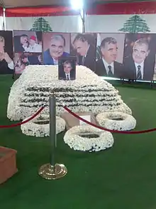 رفيق الحريري (1 نوفمبر 1944 [4] - 14 فبراير 2005)، زعيم لبناني ورئيس وزراء لبنان الأسبق ورجل أعمال.[4] كان يعتبر من كبار رجال الأعمال في العالم، وهو يحمل الجنسيتين اللبنانية والسعودية.[4] لعب دورًا مهمًا في إنهاء الحرب الأهلية اللبنانية وإعمار لبنان بعدها. وقام بالعديد من الأعمال الخيرية وكان أشهرها تقديم منح طلابية للدراسات الجامعية لأكثر من 36000 شاب وشابة من كل الطوائف اللبنانية على مدى 20 عامًا[4]، إضافة إلى تقديم المساعدات لضحايا العدوان الإسرائيلي على لبنان ومساعدة دور الأيتام والعجزة وإنقاذ جمعية المقاصد الخيرية الإسلامية من الديون. عرف بعصاميته فهو لم يرث المال ولا السلطة كما هو حال معظم سياسيي لبنان، وأصبح أحد أغنياء العالم نتيجة جهده الشخصي. اغتيل يوم 14 فبراير 2005 بمتفجرة تزن أكثر من 1000 كلغ من التي أن تي، وسبَّبَ اغتياله قيام ثورة الأرز التي أخرجت الجيش السوري من لبنان وأدت إلى قيام محكمة دولية من أجل الكشف عن القتلة ومحاكمتهم، والتي أدانت في حكمها الصادر في 18 أغسطس 2020، المتهم سليم عياش في الضلوع في عملية الاغتيال.