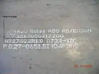 الرقم الحراري هو رقم تعريف موزع يتم ختمه على لوحة مادة بعد إزالته من المغرفة وتدحرجه في مصنع للصلب.