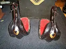 - ركائب السرج الجانبية: وبها عادةً عين أكبر قليلاً كي تلاءم بين جلد الرِّكاب السميك والسرج الجانبي.