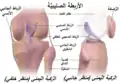 - الرباط الغضروف المفصلي الخارجي. يربط الرضفة بالهلالة الخارجية.