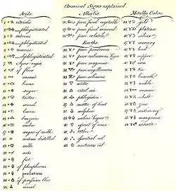 شاعت نظرية العناصر الأربعة بشكل واسع بين الخيميائيين في حضارات عدة، ومن بين الترميزات التي استخدمت لهذه العناصر التالي:[1]