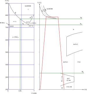 تكون بنية المادة قبل تعرضها لعملية التصليد بالرواية في هيئة حبيبية من "البيرلايت" pearlite وفي طبقات متتالية رقيقة ومتجانسة. ويتكون البيرلايت من مخلوط من "فريت الحديد" (حديد خالٍ تقريبًا من الكربون) و"سمنتيت" (حديد يحتوي على نسبة أكبر من 6و6% كربون)، وتتكون هذه عند تصنيع حديد الصب أو الفولاذ أثناء تبريدها ببطء. وبعد الصلادة بالرواية تتحول التركيبة الميكرونية (الصخرية) للمادة إلى المارتينسيت في هيئة إبرية رفيعة. [2]