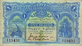 اصدرت حكومة زنجبار العملات الورقية عام 1908 وهي من فئة 5 و 10 و 20 و50 و 100 و 500 روبية، وقد اضيف 1 روبية عام 1920. واستمر اصدار الورق حتى عام 1928. وتلك العملات الورقية نادرة جدا. فحتى الكتالوجات العالمية للنقود اصدرت تقريرا بأن عملة من فئة 100 روبية اصدار عام 1916 وبحالة جيدة جدا قد بيعت في مزاد بمبلغ وقدره 7360$ عام 1960.[1]
