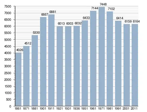 في سنة 1861 بلغ عدد السكان 4٬026 نسمة، وتطور العدد ليصل في سنة 2011 لـ 6٬164 نسمة.