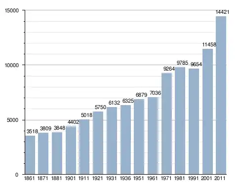 في سنة 1861 بلغ عدد السكان 3٬518 نسمة، وتطور العدد ليصل في سنة 2011 لـ 14٬421 نسمة.
