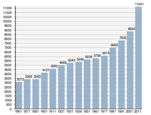في سنة 1861 بلغ عدد السكان 3٬073 نسمة، وتطور العدد ليصل في سنة 2011 لـ 11٬641 نسمة.