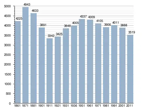 في سنة 1861 بلغ عدد السكان 4٬225 نسمة، وتطور العدد ليصل في سنة 2011 لـ 3٬519 نسمة.