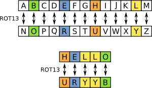 روت 13 تستبدل كل حرف بالحرف الثالث عشر الذي يليه. HELLO تصبح URYYB.