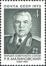![]() طابع بريد سوفيتي يحمل صورة روديون مالينوفسكي | |