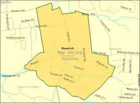 |CitationClass=تم تجاهله (مساعدة) - Look Up a ZIP Code for Roosevelt, NJ, United States Postal Service. Accessed July 31, 2012. نسخة محفوظة 8 مارس 2016 على موقع واي باك مشين.