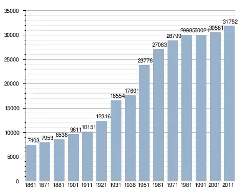 في سنة 1861 بلغ عدد السكان 7٬403 نسمة، وتطور العدد ليصل في سنة 2011 لـ 31٬752 نسمة.