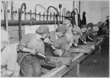 وفي وقت لاحق، عادت الكثير من النساء إلى الأعمال التقليدية مثل الكتابية أو الوظائف الإدارية، رغم ترددهن في العودة ألى وظائف ذات أجور أقل.[8] ومع ذلك، واصلت بعض من هؤلاء النساء العاملات في المصانع.