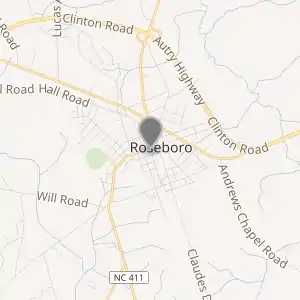 - "صفحة روسبورو (كارولاينا الشمالية) في GeoNames ID". GeoNames ID. اطلع عليه بتاريخ 6 مارس 2021. الوسيط
