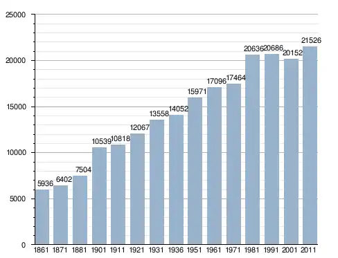 في سنة 1861 بلغ عدد السكان 5٬936 نسمة، وتطور العدد ليصل في سنة 2011 لـ 21٬526 نسمة.