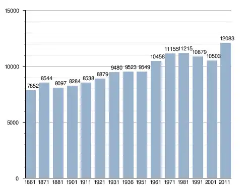 في سنة 1861 بلغ عدد السكان 7٬852 نسمة، وتطور العدد ليصل في سنة 2011 لـ 12٬083 نسمة.