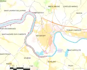 تقع أراضي المدينة في حلقة من نهر شارنت، على الضفة اليمنى الشمالية كلها، بالقرب.من مصبّه تقع على بعد 34 كم جنوب لا روشيل و46 كم شرق سانتس و150 كم جنوب غرب بواتييه و162 كم شمال بوردو و480 كم جنوب غرب باريس.
