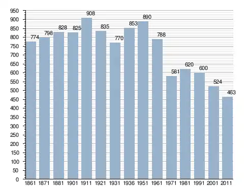 في سنة 1861 بلغ عدد السكان 774 نسمة، وتطور العدد ليصل في سنة 2011 لـ 463 نسمة.