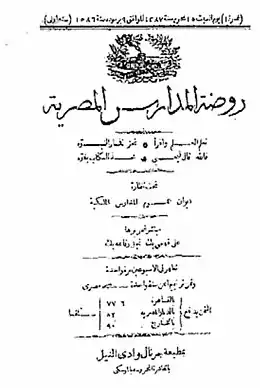 «وإن جل مرغوب ديوان المدارس المصرية اعتماداً مساعدة العناية الخديوية تعميم العلوم وتتميم المعارف وانتشار الفنون وإكثار اللطائف ومداولتها بين جميع أبناء الوطن وتسويتهم في الورود على مستعذب هذا المشروع الحسن، وإبراز الوسائل المعنية على جلب قطافها دون مشقة كبيرة، وإحراز الوسائط المسهلة لجذب أطرافها»