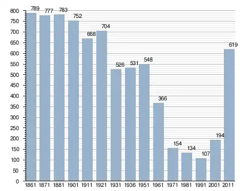 في سنة 1861 بلغ عدد السكان 789 نسمة، وتطور العدد ليصل في سنة 2011 لـ 619 نسمة.