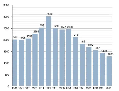 في سنة 1861 بلغ عدد السكان 2٬011 نسمة، وتطور العدد ليصل في سنة 2011 لـ 1٬285 نسمة.