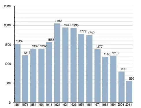 في سنة 1861 بلغ عدد السكان 1٬524 نسمة، وتطور العدد ليصل في سنة 2011 لـ 550 نسمة.